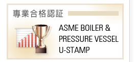 “ASME BOILER & PRESSURE VESSEL U-STAMP”認證,2024年增加 S-STAMP 認証。
